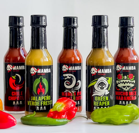 Presenting MAMBA 5 OZ Variety and 1.7 OZ 6 Pack Bundles representing culture and flavor magic from the regions of South America, Caribbean and USA raising the bar for hot sauce lovers like us!