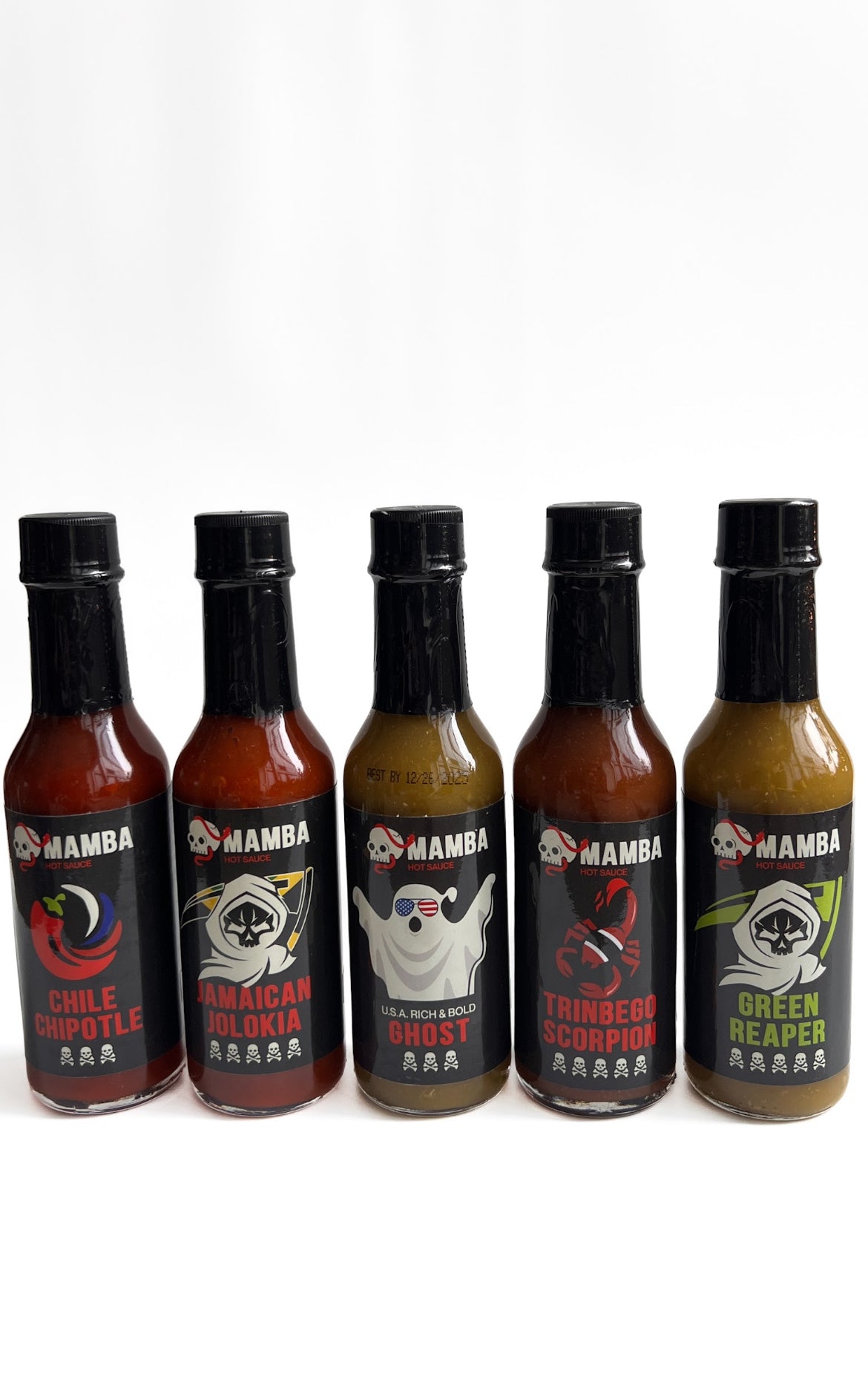 MAMBA Top 5 Seller Pack. These 5 hand selected best sellers hot sauces are packed with Flavor and heat and are loved by the MAMBA ARMY